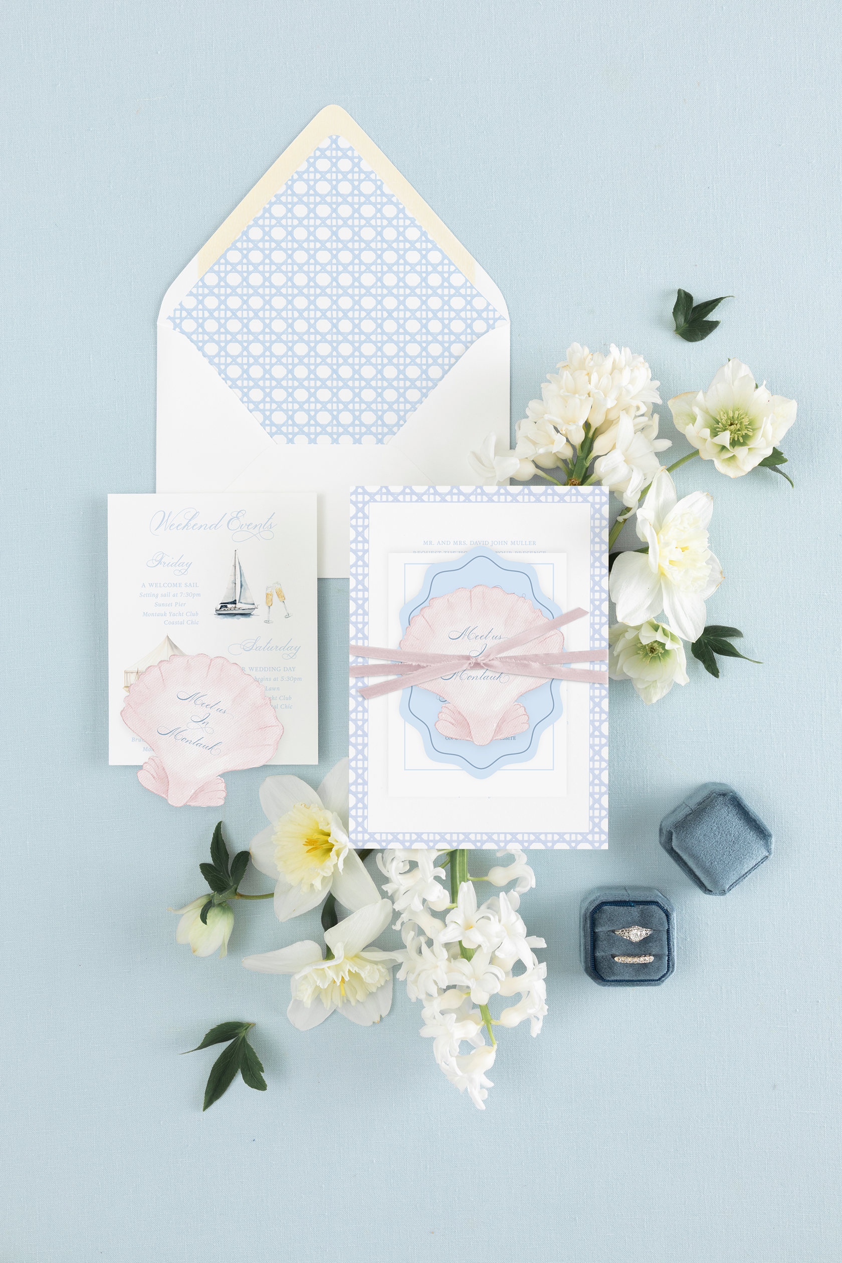 Absolutely. Whether you're hosting a wedding in Newport, Rhode Island, Cape Cod, or elsewhere in New England, we tailor your invitation suite to reflect your venue, florals, and overall aesthetic.
